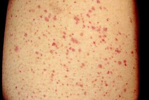 过敏性紫癜初期表现为皮肤瘀点,多出现于下肢关节周围及臀部,紫癜呈对称分布、分批出现、大小不等、颜色深浅不一,可融合成片。另外,病人可有胃肠道症状,如腹部阵发性绞痛或持续性钝痛等;可有关节疼痛;肾脏症状,如蛋白尿、血尿等。若病情长期得不到控制,便可能诱发消化道出血及紫癜性肾炎等病症。长期治疗不当,激素的过分依赖使用,可能引起肥胖、多毛、痤疮、血糖升高、高血压、骨质疏松等疾病,从而破坏机体的防卫系统和抑制免疫反应能力。